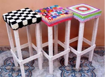 Si tienes banquitos de madera altos para desayunador y quieres darle un toque de moda te proponemos esta idea: