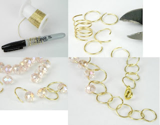 * Fabricar las arandelas con el alambre de bijou envolviendolo en una fibra, quitarlo e ir cortando cada arandela.