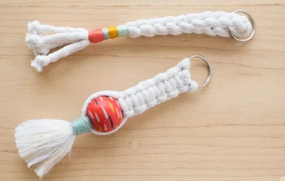 Los llaveros personalizados tercero y quinto son súper fáciles: ensartar unas cuantas cuentas y agregar una borla.